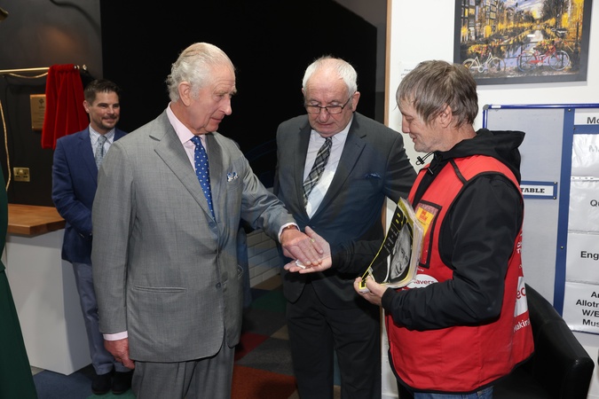 Krol Karol III i krolowa Camilla w magazynach Fare Share Didcot