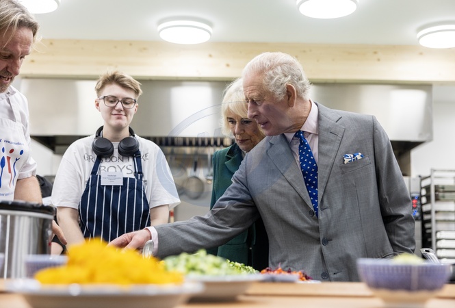 King Charles III and Queen Camilla visit Fare Share Didcot to launch the Coronation Food Project on the King's birthday 75th birthday in Didcot, Oxfordshire, UK, 14 November 2023, Credit:Ian Vogler / Avalon