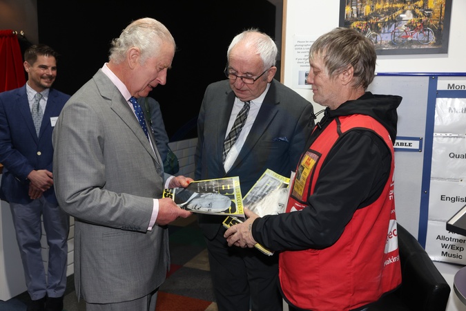 Krol Karol III i krolowa Camilla w magazynach Fare Share Didcot