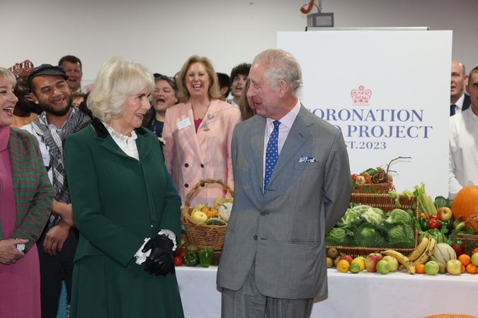 King Charles III and Queen Camilla visit Fare Share Didcot to launch the Coronation Food Project on the King's birthday 75th birthday in Didcot, Oxfordshire, UK, 14 November 2023, Credit:Ian Vogler / Avalon