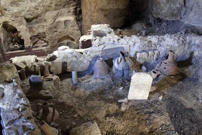 Necropolis of the Via Triumphalis. The Vatican Museums present the opening to the public of the expansion of the archaeological area of the Necropolis along the Via Triumphalis, with a new visit route enriched by a new layout. Visible to the public, the Roman archaeological excavations extend beneath the entire Vatican hill, expanded, renovated and transformed into a museum full of itineraries and multimedia educational equipment. It will be possible to walk through the burial chambers, among small mausoleums, finely sculpted sarcophagi, statues, moldings, mosaics, frescoes and bas-reliefs with epigraphs describing the life of those who rested at the foot of the ancient hill., Credit:Mimmo Frassineti / Avalon