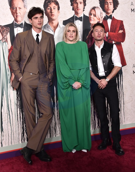 Jacob Elordi, Emerald Fennell and Barry Keoghan arriving to the Los Angeles premiere of ‘Saltburn held at the Ace Theatre Downtown LA on November 14, 2023 in Los Angeles, Ca.© Lisa OConnor/AFF-USA.com
