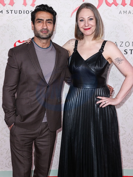 LOS ANGELES, CALIFORNIA, USA - NOVEMBER 14: Kumail Nanjiani and wife Emily V. Gordon arrive at the Los Angeles Premiere Of Amazon MGM Studios' 'Saltburn' held at The Theatre at Ace Hotel on November 14, 2023 in Los Angeles, California, United States., Credit:Xavier Collin / Avalon
