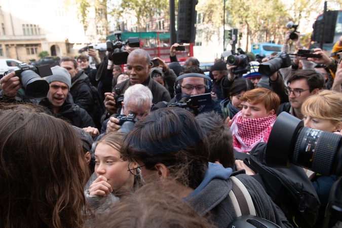Swedish environmental activist Greta Thunberg departs Westminster Magistrates' Court in London, England, UK on Wednesday 15 November, 2023 where she pleaded not guilty to a public order offence. She then ran away from a media scrum., Credit:Justin Ng / Avalon