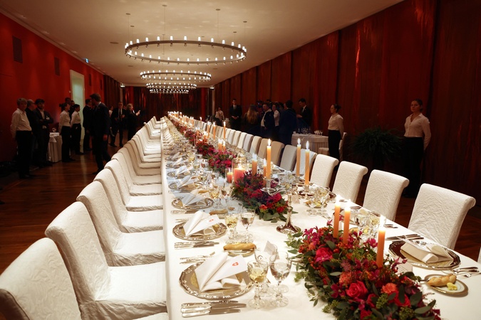 Uroczysta kolacja na cześć prezydenta Emmanuela Macrona i jego żony Brigitte Macron wydana przez Prezydenta Konfederacji Szwajcarskiej w Bernie