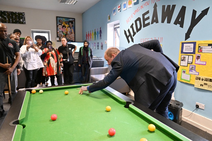Prince William, Prince of Wales visits the Hideaway Youth Project, lead partner of the Manchester Peace Together Alliance during his visit to Moss Side on November 16, 2023 in Manchester, England. The Prince of Wales has unveiled a three year commitment to help reduce youth violence in Manchester, supporting the work of Manchester Peace Together Alliance. NO UK USE FOR 48 HOURS, Credit:Avalon.red / Avalon