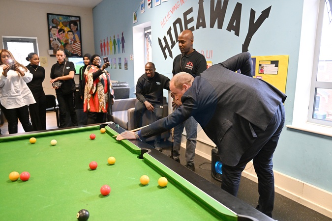 Prince William, Prince of Wales visits the Hideaway Youth Project, lead partner of the Manchester Peace Together Alliance during his visit to Moss Side on November 16, 2023 in Manchester, England. The Prince of Wales has unveiled a three year commitment to help reduce youth violence in Manchester, supporting the work of Manchester Peace Together Alliance. NO UK USE FOR 48 HOURS, Credit:Avalon.red / Avalon