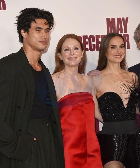 Charles Melton, Julianne Moore, Natalie Portman attends the Los Angeles Premiere Of Netflixs "May December" at Academy Museum of Motion Pictures on November 16, 2023 in Los Angeles, California, Credit:Avalon