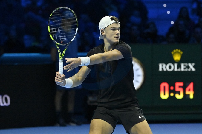 Holger Rune - Victoire de J.Sinner face à H.Rune (6-2, 5-7, 6-4) lors du Masters de Turin, le 16 novembre 2023. © Chryslene Caillaud / Panoramic / Bestimage Victory for J.Sinner against H.Rune (6-2, 5-7, 6-4) during the Turin Masters, November 16, 2023.
