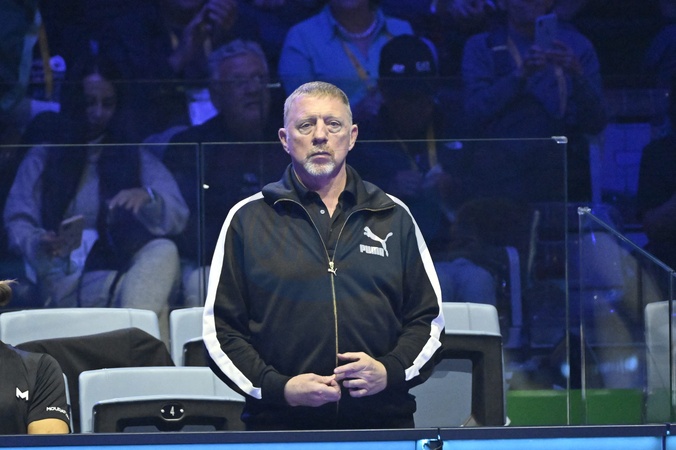 Boris Becker, l'entraîneur d'Holger Rune - Victoire de J.Sinner face à H.Rune (6-2, 5-7, 6-4) lors du Masters de Turin, le 16 novembre 2023. © Chryslene Caillaud / Panoramic / Bestimage Victory for J.Sinner against H.Rune (6-2, 5-7, 6-4) during the Turin Masters, November 16, 2023.