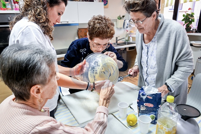 Don Gnocchi - Center of S. Maria ai Colli. Health facility.In the photo, elderly women in the kitchen: after a stroke, the hand-brain connection is also restored by kneading. It's midday and in the Don Gnocchi gym-kitchen it's time to prepare biscuits. 16/11/2023 Turin, Italy, Credit:Nicola Marfisi / Avalon