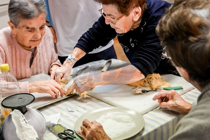 Don Gnocchi - Center of S. Maria ai Colli. Health facility.In the photo, elderly women in the kitchen: after a stroke, the hand-brain connection is also restored by kneading. It's midday and in the Don Gnocchi gym-kitchen it's time to prepare biscuits. 16/11/2023 Turin, Italy, Credit:Nicola Marfisi / Avalon