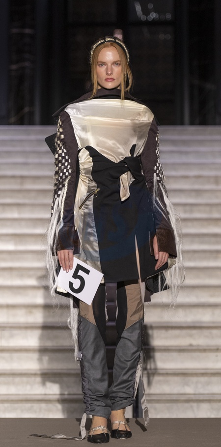 London, UK. 17th Nov, 2023. Fashion in Motion: Inspired by Gabrielle Chanel. To coincide with the exhibition Gabrielle Chanel. Fashion Manifesto, 2nd year students at Central Saint Martins BA Fashion Design Womenswear course showcase a unique selection of outfits created in response to one of the 20th century's most influential designers. 22 designs are presented in a series of catwalks set against the backdrop of the V&A's iconic Raphael Gallery., Credit:MALCOLM PARK / Avalon