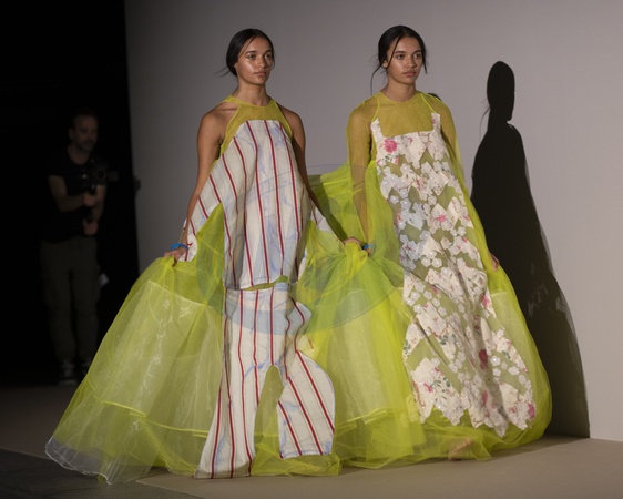 London, UK. 17th Nov, 2023. Fashion in Motion: Inspired by Gabrielle Chanel. To coincide with the exhibition Gabrielle Chanel. Fashion Manifesto, 2nd year students at Central Saint Martins BA Fashion Design Womenswear course showcase a unique selection of outfits created in response to one of the 20th century's most influential designers. 22 designs are presented in a series of catwalks set against the backdrop of the V&A's iconic Raphael Gallery., Credit:MALCOLM PARK / Avalon
