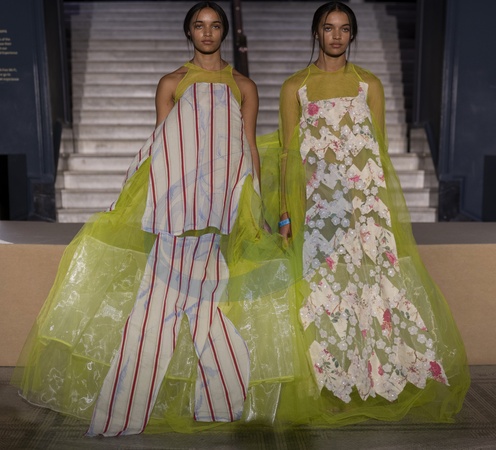 London, UK. 17th Nov, 2023. Fashion in Motion: Inspired by Gabrielle Chanel. To coincide with the exhibition Gabrielle Chanel. Fashion Manifesto, 2nd year students at Central Saint Martins BA Fashion Design Womenswear course showcase a unique selection of outfits created in response to one of the 20th century's most influential designers. 22 designs are presented in a series of catwalks set against the backdrop of the V&A's iconic Raphael Gallery., Credit:MALCOLM PARK / Avalon