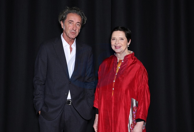 Paolo Sorrentino i Isabella Rosselini na na otwarciu festiwalu „Neapol oczami filmowców” w Luwrze w Paryżu