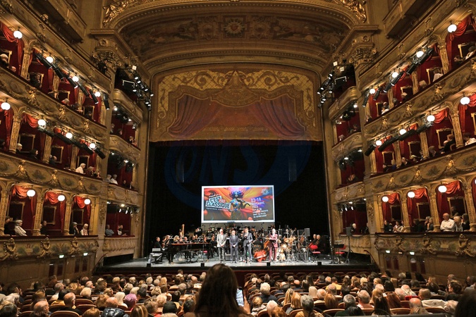 Exclusif - Auguste Vérola, conseiller départemental en charge de la culture, Eric Ciotti, le député de la 1ere circonscription des Alpes-Maritimes, président de la commission des finances du département et président des LR, Charles Ange Ginésy, le président du Conseil Départemental des Alpes-Maritimes, et Marc Toesca, le présentateur de la soirée - Kyle Eastwood, le bassiste, compositeur de jazz et fils de Clint Eastwood, s'est produit à l'Opéra de Nice, dans le cadre du Festival "C'est Pas Classique", où il a rendu un hommage à son père, acteur, réalisateur et musicien, en interprétant ses musiques de films avec l'Orchestre Philharmonique de Nice, le 17 novembre 2023. Le concert met en musique la relation entre deux arts qui ont en commun la force de l'évocation et la charge émotionnelle, et entre deux artistes, qui, au-delà du lien familial, partagent la passion du cinéma et de la musique. Les bandes originales emblématiques de films réalisées entre 1964 et 2009 se succéderont, tels des plans-séquences liés par la baguette du chef d'orchestre G.Waltzing. C'est là une façon de saluer le travail de leurs réalisateurs et de leurs compositeurs, arrangeurs, chefs d'orchestre, issus de la musique classique ou du jazz. Ce festival est organisé chaque année par la Conseil Départemental, et tous les concerts sont gratuits. Avec plus de 30 concerts, pour cette 18ème édition, tous les styles de musiques ont eu leur place en allant de M.Cerrone, à Kyle Eastwood en passant par les Solistes de Monaco. © Bruno Bebert / Bestimage No web pour la Belgique et la Suisse Exclusive - For Germany, call for price - Kyle Eastwood, bassist, jazz composer and son of Clint Eastwood, performed at the Nice Opera, as part of the "C'est Pas Classique" Festival, where he paid tribute to his father, actor , director and musician, performing his film scores with the Nice Philharmonic Orchestra, on November 17, 2023. The concert sets to music the relationship between two arts which have in common the force of evocation and emotional charge, and between two artists, who, beyond the family bond, share a passion for cinema and music. The emblematic soundtracks of films produced between 1964 and 2009 will follow one another, like sequence shots linked by the baton of conductor G. Waltzing. This is a way of saluting the work of their directors and their composers, arrangers, conductors, from classical music or jazz. This festival is organized every year by the Departmental Council, and all concerts are free. With more than 30 concerts, for this 18th edition, all styles of music had their place, from M.Cerrone to Kyle Eastwood to the Soloists of Monaco.