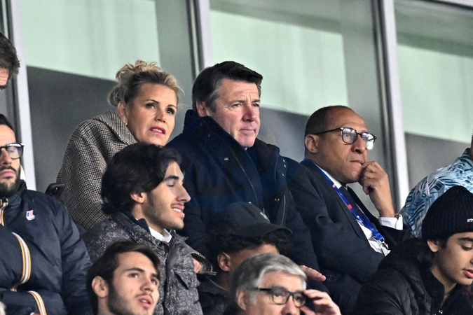 Laura Tenoudji Estrosi, son mari, Christian Estrosi, le maire de Nice, et Philippe Diallo, le président de la Fédération Française de Football, durant la match de football de phase de groupes de l'Euro 2024, France contre Gibraltar, à l'Allianz Riviera à Nice, le 18 novembre 2023. Déjà qualifiée pour l'Euro-2024,la France a battu Gibraltar 14 à 0. C'est la plus large victoire de l'histoire des Bleus. Ils se sont imposés grâce notamment à un triplé de Kylian Mbappé et des doublés de Kingsley Coman et Olivier Giroud. Warren Zaïre-Emery, qui afait ses grands débuts en Bleu à 17 ans, 8 mois et 10 jours, le plus jeune joueur à revêtir le maillot bleu depuis 1911, a été l'auteur du 3eme but.Le milieu de terrain n'a profité qu'un quart d'heure de sa première sélection en équipe de France, à 17 ans, ayant été contraint de sortir prématurément, blessé à la cheville juste après avoir marqué son premier but avec les Bleus. © Bruno Bebert / Bestimage Already qualified for Euro-2024, France beat Gibraltar 14 to 0. It is the largest victory in the history of the Bleus. They won thanks in particular to a hat-trick from Kylian Mbappé and doubles from Kingsley Coman and Olivier Giroud. Warren Zaire-Emery, who made his debut in the team of France at 17 years, 8 months and 10 days, the youngest player to wear the blue jersey since 1911, was the author of the 3rd goal. The midfielder only enjoyed a quarter of an hour of his first selection for the French team, at 17, having been forced to leave prematurely, injured in the ankle just after scoring his first goal with this team.
