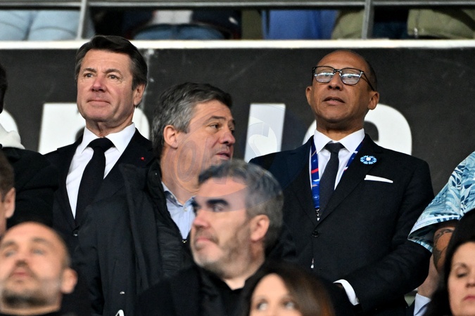 Christian Estrosi, le maire de Nice, et Philippe Diallo, le président de la Fédération Française de Football, durant la match de football de phase de groupes de l'Euro 2024, France contre Gibraltar, à l'Allianz Riviera à Nice, le 18 novembre 2023. Déjà qualifiée pour l'Euro-2024,la France a battu Gibraltar 14 à 0. C'est la plus large victoire de l'histoire des Bleus. Ils se sont imposés grâce notamment à un triplé de Kylian Mbappé et des doublés de Kingsley Coman et Olivier Giroud. Warren Zaïre-Emery, qui afait ses grands débuts en Bleu à 17 ans, 8 mois et 10 jours, le plus jeune joueur à revêtir le maillot bleu depuis 1911, a été l'auteur du 3eme but.Le milieu de terrain n'a profité qu'un quart d'heure de sa première sélection en équipe de France, à 17 ans, ayant été contraint de sortir prématurément, blessé à la cheville juste après avoir marqué son premier but avec les Bleus. © Bruno Bebert / Bestimage Already qualified for Euro-2024, France beat Gibraltar 14 to 0. It is the largest victory in the history of the Bleus. They won thanks in particular to a hat-trick from Kylian Mbappé and doubles from Kingsley Coman and Olivier Giroud. Warren Zaire-Emery, who made his debut in the team of France at 17 years, 8 months and 10 days, the youngest player to wear the blue jersey since 1911, was the author of the 3rd goal. The midfielder only enjoyed a quarter of an hour of his first selection for the French team, at 17, having been forced to leave prematurely, injured in the ankle just after scoring his first goal with this team. © Bruno Bebert / Bestimage