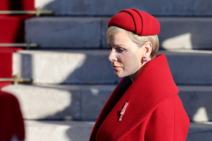 La princesse Charlene de Monaco - La famille princière de Monaco à son arrivée en la cathédrale Notre-Dame Immaculée pour la messe solennelle d'action de grâce et un Te Deum, à l'occasion de la Fête Nationale de Monaco. Le 19 novembre 2023 © Dominique Jacovides-Bruno Bebert / Bestimage The Princely Family of Monaco on their arrival in the Cathedral of Our Lady Immaculate for the solemn Mass of thanksgiving and a Te Deum, on the occasion of the National Day of Monaco. November 19, 2023