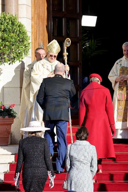 Rodzina książęca Monako po przybyciu do katedry Notre-Dame Immaculée na uroczystą mszę dziękczynną i Te Deum z okazji Święta Narodowego Monako