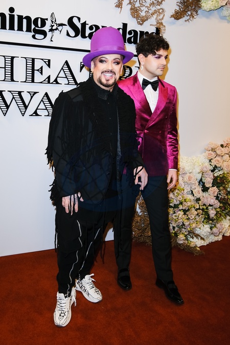 Boy George and Vangelis Polydorou photographed arriving at the Evening Standard Theatre Awards held at Claridge's in London, UK on 19 November 2023., Credit:Julie Edwards / Avalon