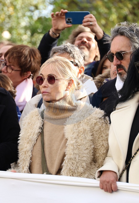 Emmanuelle Béart - Les célébrités participent à la marche silencieuse pour la paix au Proche-Orient, entre l'Institut du monde arabe et le musée d'art et d'histoire du judaïsme à Paris, le 19 novembre 2023. A l'appel d'un collectif de 600 personnalités du monde de la culture, plusieurs milliers de personnes ont rejoint le cortège. © Denis Guignebourg / Bestimage Celebrities participate in the silent march for peace in the Middle East, between the Institute of the Arab World and the Museum of Art and History of Judaism in Paris, November 19, 2023. At the call of a collective of 600 personalities from the world of culture, several thousand people joined the procession.