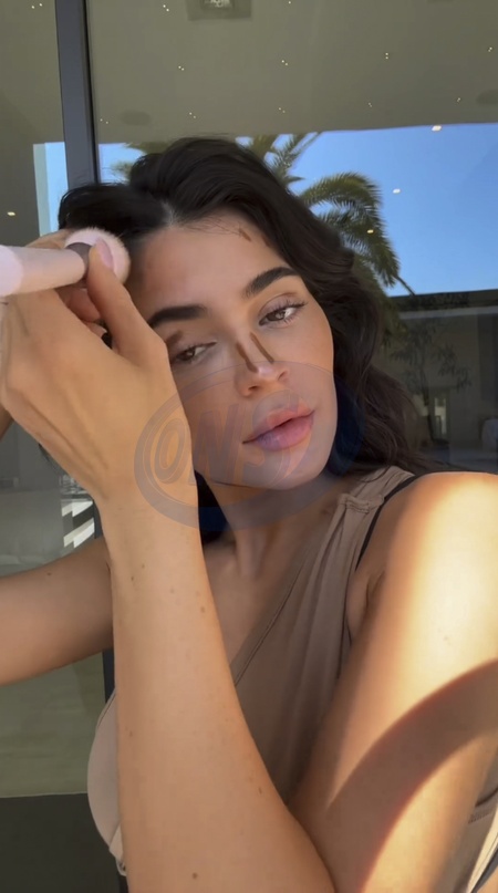 Screenshot of Kylie Jenner, latest post on social media, 19th November 2023.Quote:"quick everyday makeup using @kyliecosmetics power plush longwear concealer shade 4.5WN & 9W concealer brush ‘Way To Glow' glow balm ‘Love That 4 U' tinted butter balm", Credit:B4859 / Avalon