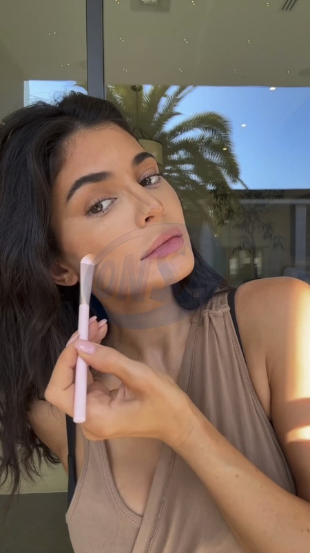 Screenshot of Kylie Jenner, latest post on social media, 19th November 2023.Quote:"quick everyday makeup using @kyliecosmetics power plush longwear concealer shade 4.5WN & 9W concealer brush ‘Way To Glow' glow balm ‘Love That 4 U' tinted butter balm", Credit:B4859 / Avalon