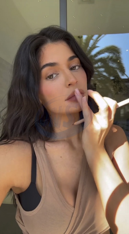 Screenshot of Kylie Jenner, latest post on social media, 19th November 2023.Quote:"quick everyday makeup using @kyliecosmetics power plush longwear concealer shade 4.5WN & 9W concealer brush ‘Way To Glow' glow balm ‘Love That 4 U' tinted butter balm", Credit:B4859 / Avalon
