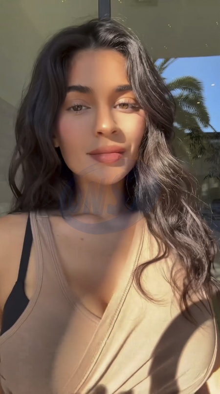 Screenshot of Kylie Jenner, latest post on social media, 19th November 2023.Quote:"quick everyday makeup using @kyliecosmetics power plush longwear concealer shade 4.5WN & 9W concealer brush ‘Way To Glow' glow balm ‘Love That 4 U' tinted butter balm", Credit:B4859 / Avalon