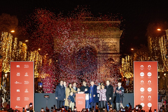 Anne Hidalgo, Gilles Lellouche, Marc-Antoine Jamet (président du comité des Champs- Elysées), Jeanne d'Hauteserre - Lancement des Illuminations de Noël des Champs-Elysées à Paris le dimanche 19 Novembre 2023. © Pierre Perusseau/Bestimage Launch of the Christmas Lights on the Champs-Elysées in Paris on Sunday November 19, 2023.