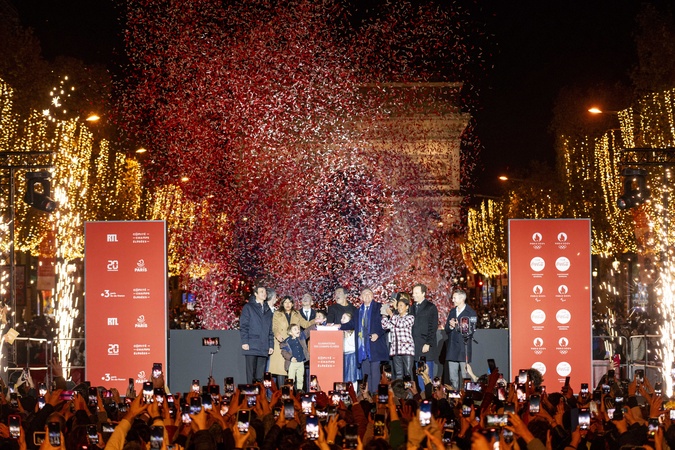 Anne Hidalgo, Gilles Lellouche, Marc-Antoine Jamet (président du comité des Champs- Elysées), Jeanne d'Hauteserre - Lancement des Illuminations de Noël des Champs-Elysées à Paris le dimanche 19 Novembre 2023. © Pierre Perusseau/Bestimage Launch of the Christmas Lights on the Champs-Elysées in Paris on Sunday November 19, 2023.