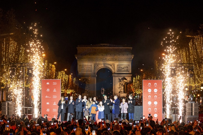Anne Hidalgo, Gilles Lellouche, Marc-Antoine Jamet (président du comité des Champs- Elysées), Jeanne d'Hauteserre - Lancement des Illuminations de Noël des Champs-Elysées à Paris le dimanche 19 Novembre 2023. © Pierre Perusseau/Bestimage Launch of the Christmas Lights on the Champs-Elysées in Paris on Sunday November 19, 2023.