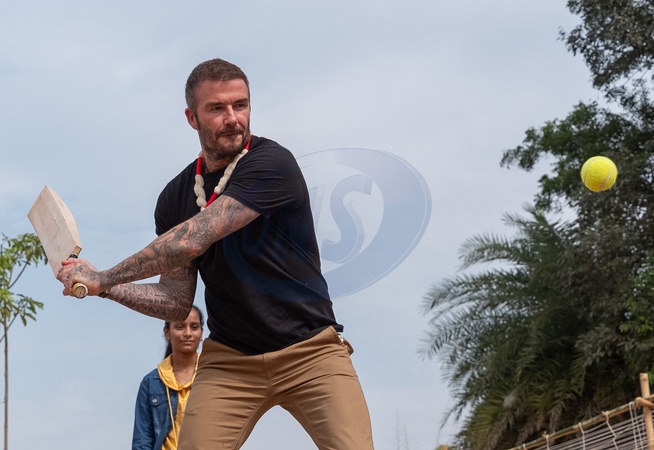 On 14 November 2023 in India, UNICEF Goodwill Ambassador David Beckham (centre) plays cricket with adolescents at the community centre in the Banaskantha district of Gujarat state. Mr. Beckham has come to meet adolescents who are champions of child rights and to hear their personal stories of empowerment – how they have stood up to reject child labour and child marriage and have fought to prevent gender-based violence – as well as descriptions of the support they have received from the community in various ways, including through mental health and psychosocial support (MHPSS). Mr. Beckham travelled to India this week to meet children and adolescents, including girls who are bringing about change and innovation in their communities, and young women who have overcome barriers to help close gender gaps. During his four-day visit, Beckham saw first-hand how UNICEF-supported programmes are making a difference for girls and women, in partnership with the Government of India. The aim of the visit to the community centre was to give a deeper understanding of the context and effective initiatives by community, government and civil society organizations to ensure that every child is protected and empowered (with a gender and equity focus). Adolescents shared their dreams, aspirations, journey so far and the obstacles they have overcome along the way. Community members, front line workers and government functionaries added their experiences, perspectives and insights on the changing times and how the community supports adolescents on their path to greater empowerment, as well as challenges they have faced and how they have overcome them. © Anindita Mukherjee/UNICEF via Bestimage