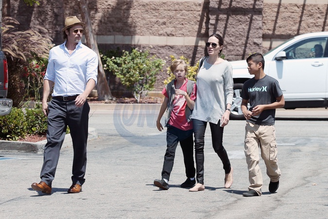139942, EXCLUSIVE: Brad Pitt and Angelina Jolie take kids Shiloh and Pax to a Toys R Us in Glendale. The power couple, one of Hollywood's richest, stopped for a discount meal at Subway Sandwiches with their brood. Los Angeles, California - Friday July 10, 2015., Credit:PacificCoastNews, Fame/Flynet. / Avalon