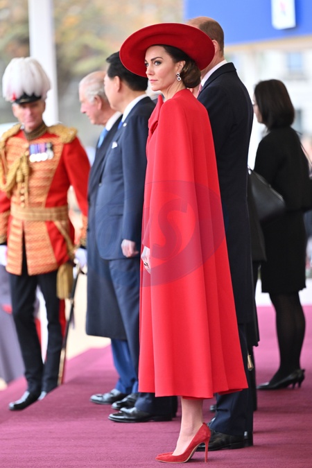 HRH King Charles III, Queen Camilla, William, Prince of Wales and Catherine, Prince of Wales receive President of South Korea Yoon Suk Yeol during the state visit ceremonial welcome at Horse Guards Parade in London, UK, 21 November 2023, Credit:Tim Rooke/Shutterstock / Avalon