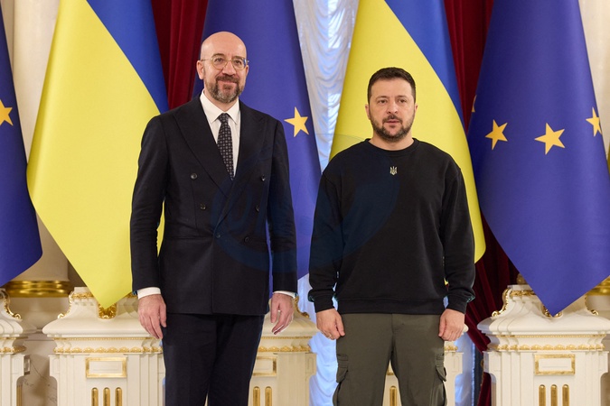 Le président ukrainien Volodymyr Zelensky a eu des entretiens bilatéraux avec le président du Conseil européen Charles Michel et la présidente de la République de Moldavie Maia Sandu, qui sont en visite en Ukraine, le 21 novembre 2023. © Ukrainian President via Bestimage President of Ukraine Volodymyr Zelenskyy held bilateral meetings with President of the European Council Charles Michel and President of the Republic of Moldova Maia Sandu, who are on a visit to Ukraine.