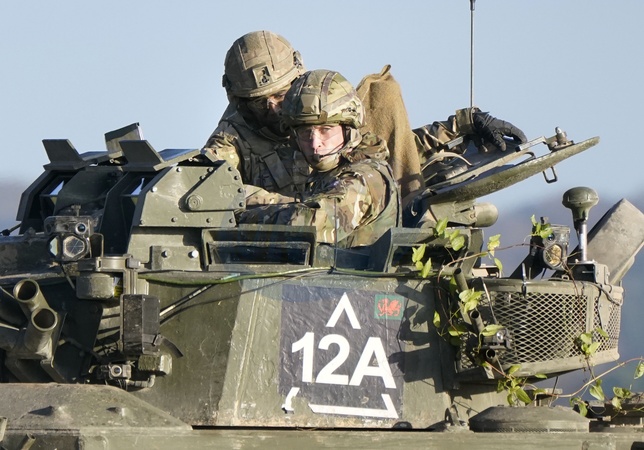 The Prince of Wales, Colonel-in-Chief, 1st Battalion Mercian Regiment (right), rides in an armoured vehicle while on a training exercise during a visit to the regiment, in the south west of the UK, for the first time following his appointment to the role by King Charles III., Credit:Andrew Matthews / Avalon