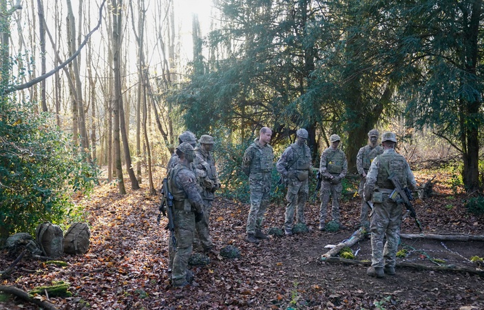 The Prince of Wales, Colonel-in-Chief, 1st Battalion Mercian Regiment (4th left) listens to a briefing ahead of an attack exercise during a visit to the regiment, in the south west of the UK, for the first time following his appointment to the role by King Charles III., Credit:Andrew Matthews / Avalon