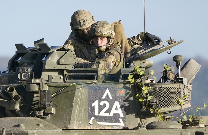The Prince of Wales, Colonel-in-Chief, 1st Battalion Mercian Regiment (right) rides in a Warrior Armoured Fighting Vehicle as he takes part in an attack exercise during a visit to the regiment, in the south west of the UK, for the first time following his appointment to the role by King Charles III., Credit:Andrew Matthews / Avalon