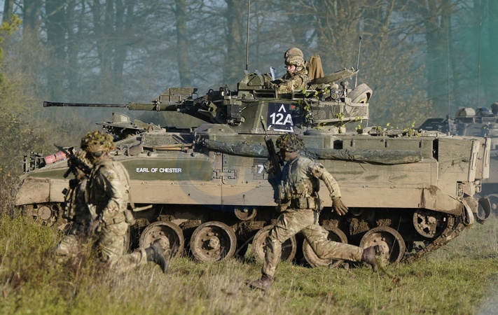 The Prince of Wales, Colonel-in-Chief, 1st Battalion Mercian Regiment rides in a Warrior Armoured Fighting Vehicle as he takes part in an attack exercise during a visit to the regiment, in the south west of the UK, for the first time following his appointment to the role by King Charles III., Credit:Andrew Matthews / Avalon