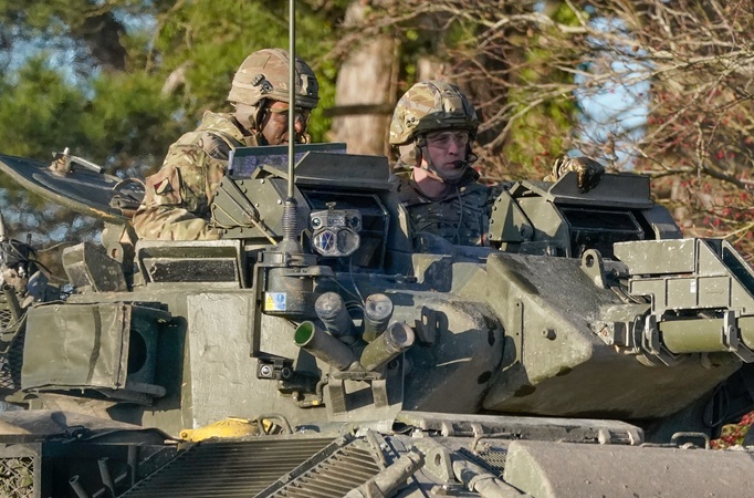 The Prince of Wales, Colonel-in-Chief, 1st Battalion Mercian Regiment (right) rides in a Warrior Armoured Fighting Vehicle as he takes part in an attack exercise during a visit to the regiment, in the south west of the UK, for the first time following his appointment to the role by King Charles III., Credit:Andrew Matthews / Avalon