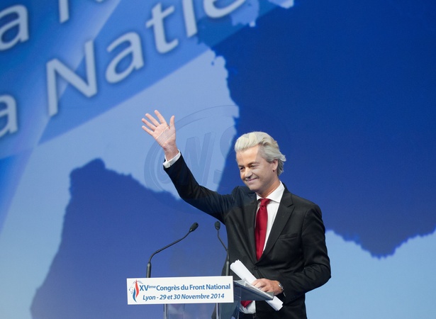 Info - Aux Pays-Bas, l'extrême droite de Geert Wilder remporte les législatives, selon les sondages - Geert Wilders (Hollande) - Remise des glaives d'honneur lors du 15ème Congrès du Front National à Lyon. Le 29 novembre 2014 15th congress of the party, in Lyon, France on November 29, 2014