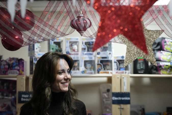 Kate, Princess of Wales smiles as she speaks to people during her visit to Sebby's Corner in north London, Friday, Nov. 24, 2023. The Royal Foundation Centre for Early Childhood to provide support to families with young children in the run up to Christmas. Sebby's Corner was formed in January 2021 and provides items to families in need across Barnet, Hertfordshire and London. NO UK USE FOR 48 HOURS, Credit:Avalon.red / Avalon