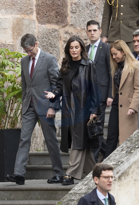 La reine Letizia d'Espagne assiste à la cérémonie de clôture du XVIe "Séminaire international sur la langue et le journalisme" au monastère de Yuso à San Millan de la Cogolla, La Rioja, Espagne, le 24 novembre 2023. Queen Letizia attends the closing ceremony of the XVI ‘International Seminar on Language and Journalism' at the Monastery of Yuso in San Millan de la Cogolla, La Rioja, Spain on November 24, 2023.