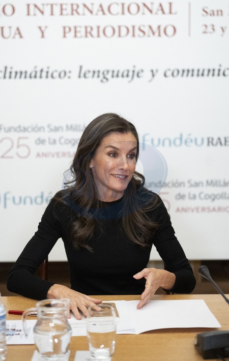 La reine Letizia d'Espagne assiste à la cérémonie de clôture du XVIe "Séminaire international sur la langue et le journalisme" au monastère de Yuso à San Millan de la Cogolla, La Rioja, Espagne, le 24 novembre 2023. Queen Letizia attends the closing ceremony of the XVI ‘International Seminar on Language and Journalism' at the Monastery of Yuso in San Millan de la Cogolla, La Rioja, Spain on November 24, 2023.