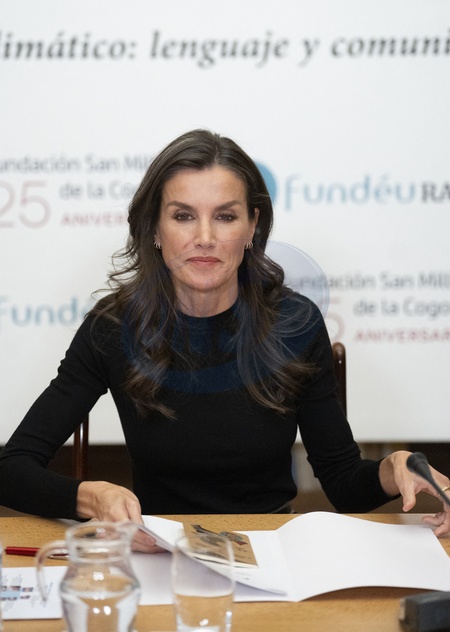 La reine Letizia d'Espagne assiste à la cérémonie de clôture du XVIe "Séminaire international sur la langue et le journalisme" au monastère de Yuso à San Millan de la Cogolla, La Rioja, Espagne, le 24 novembre 2023. Queen Letizia attends the closing ceremony of the XVI ‘International Seminar on Language and Journalism' at the Monastery of Yuso in San Millan de la Cogolla, La Rioja, Spain on November 24, 2023.