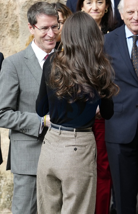 La reine Letizia d'Espagne à la sortie de la cérémonie de clôture du XVIe "Séminaire international sur la langue et le journalisme" au monastère de Yuso à San Millan de la Cogolla, Espagne, le 24 novembre 2023. Queen Letizia attends the closing ceremony of the XVI ‘International Seminar on Language and Journalism' at the Monastery of Yuso in San Millan de la Cogolla, La Rioja, Spain, on November 24, 2023.