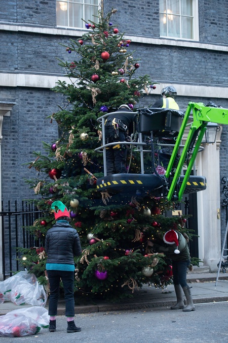 Downing Street Christmas Tree Installed - Friday 24 November 2023 - London